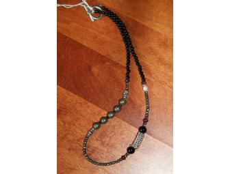 Onyx, Pyrite, Ruby & Pewter Necklace