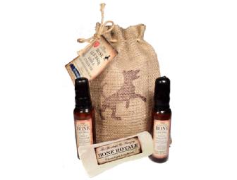 Including two 2 oz. bottles of Bone Elicksir Spray and 1 Bone Royale sterilized beef bone in the beautiful and useful jute bag.