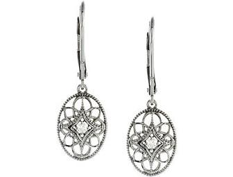 These beautiful earrings are crafted in sterlilng silver with sparkling genuine diamonds. They are have lever backs so that the earrings dangle from the setting and are fabulous for every day! Black gift box included.