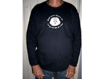 Embroidered white Bichon and SPR Logo on front of Navy Shirt.