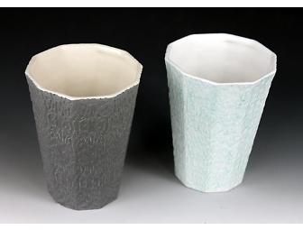 Slip cast porcelain cups: each cup approx: 6"x3"x3"