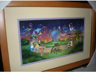 Framed Epcot Center Litho with Disney characters & Dumbo Pin!