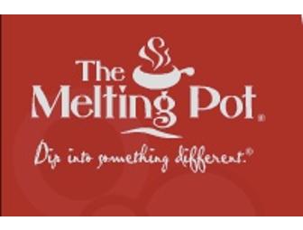 Enjoy an evening at The Melting Pot with a gift card for $50.00. Come immerse yourself in all the delicious fondue you can stand. Begin with incredible cheese fondue, choose from a wide selection of entrees and the wrap up with one of their decedent chocolate fondues for desert.