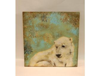 Original mixed media piece: oil, acrylic, and ground metal on stretched canvas. Wired in back and ready for the wall. Highly textured with the finest acrylics. Glazed with UV protection applied for the preservation of your art. Signed on front. Dimensions 18 by 24 inches.