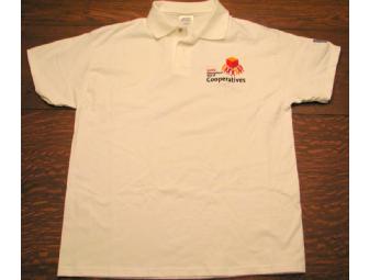 Show your Cooperative Pride by wearing a 100% cotton white polo with the color 2012 IYC logo stitched on the left chest (4"x3") and a small wocco logo on the sleeve. Your choice of size XL or L (runs large).