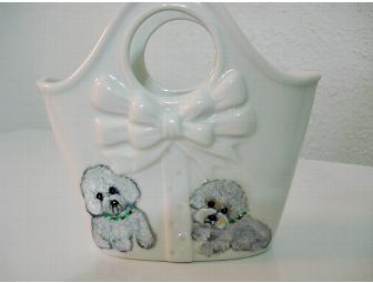 Cute china basket with two sweet Bichons handpainted on the front