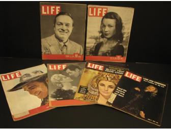 This is a selection of six vintage issues of LIFE Magazine featuring movie stars on each cover.