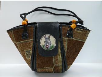 Unique woven purse from Africa. Deep enough to hold all your necessary belongings while still compact and convenient. The front is adorned with a leather hand painted zebra patch. Give it to that special someone to really make them stand out in the crowd. 8" x 12"