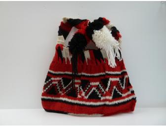 Festive, hand woven purse from Papua New Guinea. Colors of the purse represent those on the country's national flag, red, black, and white. 11" x 14"