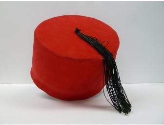 Set of three hats from different countries around the world.  The first item is a Turkish fez.  It is made of red velvet and traditional black tassels.  The second item is authentic French headgear.  This too is made from plush velvet and local materials.  The final piece in this set is a costume wig from the country of Georgia.  Great for themed parties or to add style to any wall.