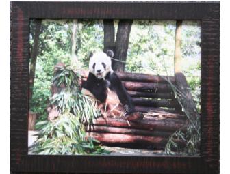 Tai Shan celebrating his 7th birthday to be by using his brand new bench. Photo is 8x10 framed in a black frame.