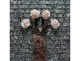 Tesserae: desert rose flowers, a polymer clay trunk, mirrored glass branches, and a grey Van Gogh glass