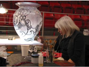 Cappy Thompson began her career as a painter and a printmaker. Her first professional exposure to glass was in 1975 when she went to work for a studio in Olympia. She worked there until her reputation caught the attention of glass artists Charles Parriott, Therman Statom and Dale Chihuly. In 1984 Cappy moved to Seattle, worked at Pilchuck Glass School, and was led to painting on vessel forms.