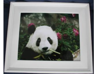 Tai Shan enjoying a bamboo meal amongst the spring flowers at the national zoo. 8x10 photo framed.