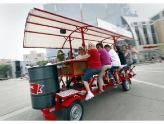 Enjoy a 2 hour pedal tour/pub crawl. 8-14 people can ride the capitol pedaler. Food, music, and beverages may be brought on-board (no alcohol). Winner of certificate must call to schedule tour. Riders must be 15 or older, 5 feet or taller, and 300 pounds or less.