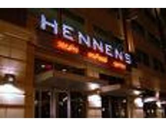 Enjoy dinner for 2 at Hennen's Restaurant and the use of one limousine within a 25 mile radius of Chattanooga. $80 to use for food and beverage, limit may be increased and paid by certificate holder to Hennen's at time of use. Excludes alcoholic beverages. Valid Monday-Thursday, 5:00 -10:30 p.m. Reservations are required 4 working days in advance. Valid through October 31, 2012. www.chattanoogafuneralhome.com