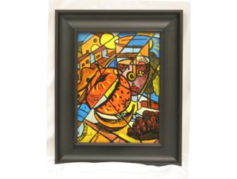 From the South African Artist, Deanali: "I make the world my studio, which today is not hard thanks to the Internet and technology." The painting is framed in a black custom frame. Measurements are 13 1/4" (w) x 16 1/4" (h). www.deanaliartists.com