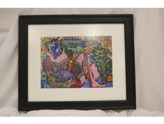 From the South African born artist, Deanali: "I make the world my studio, which today is not hard thanks to the Internet and technology." The painting by Deanali is matted and framed in a black custom frame. Measuurements are 23 1/4 inches wide x 19 1/4 inches high. www.deanaliartists.com
