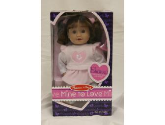 Melissa & Doug Mine to Love Brianna doll measures 12" tall and includes pacifier. Package also includes a $10 gift certificate to A Child's Garden Boutique. No expiration date. http://www.facebook.com/pages/A-Childs-Garden-Boutique/178702688009