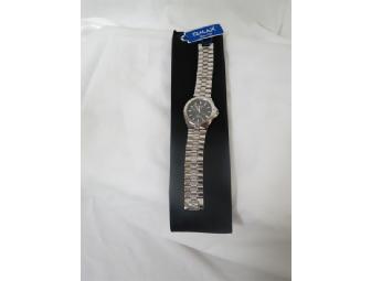Sterling silver Omax quartz men's watch is also waterproof and comes with soft case. Watch bracelet is 8.75" max. http://www.omax-watch.com/