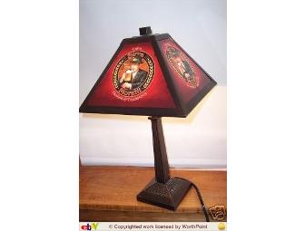 This unique item is perfect a great piece for any beer enthusiast or collector. The base is entirely metal and has great detail. The antique bronze finish is carried throughout the entire lamp and gives a very high-end look to this awesome brewerania piece! The lamp takes a 25 watt bulb that creates a warm glow through the semi-transparent lamp shade. THe shade has 4 panels, each with the Moretti logo on a burgundy background and is topped with a square metal finial. The lamp has a 7.5 foot cord with power switch. Lamp is 17.5 inches tall. Lamp shade has 10 inch diameter. www.everbrite.com