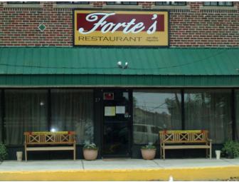 $35 Gift card to Forte's Restaurant on the Square, which is located in Crossville, Tennessee. This steakhouse has a large, full-range menu and offers Italian and seafood cuisine in addition to cocktails. Forte's gets great rave reviews including "friendly staff" and food "cooked to perfection"! Open for lunch Tues-Fri 11-2 and dinner on Fri & Sat from 4-9. Gift Card has no expiration date. www.fortesonthesquare.com