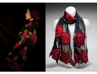 I endeavor to create only the finest quality, highest vibration garments using premium organic materials made from 100% silk chiffon and fibers such as Alpaca, Merino, Polwarth and Yak wools as well as Bamboo fiber and Bombyx silk. I am originally from Budapest, Hungary where I received a degree in fine art and painted oil on canvas. This helped me to devise a unique process I call "Fusion Felting", which combines the nuno-felting process with my oil on canvas experience. The end result is a truly unique piece of wearable art. Growing up in the Carpathian mountains, nature became a great contributor to my inspiration and I am proud to present my "Fiore Collection" for 2012- a collection of floral themes on silk that includes Roses, Poppies, Sunflowers, Lotus flowers and more. All of my shawls, scarves and wraps are handmade in my studio in Southern Illinois and all fiber is hand-dyed or painted by myself and my assistants. - Andrea LeBeau