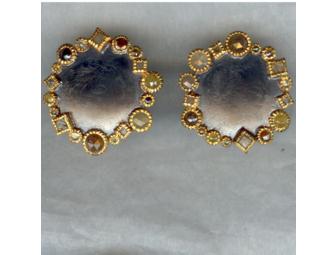 Earrings featuring 18k gold and sterling silver with rose cut and diamond cubes. They are round posts measuring 28mm each.