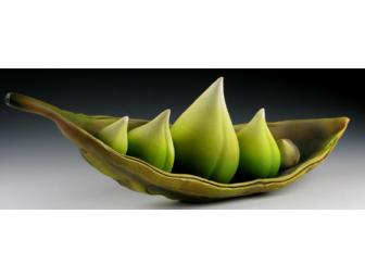 Handbuilt porcelain form with wheel thrown porcelain seeds.
