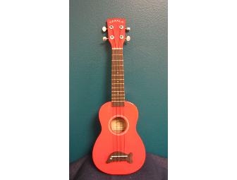 Makala brand "Kala" Ukelele in Ruby Red. Includes cloth carrying case and instructional guide.