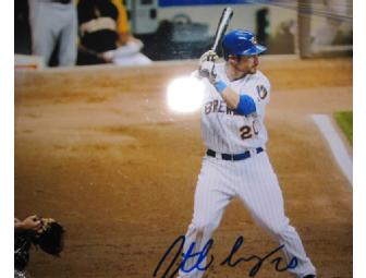An 8x10 framed photograph, autographed by Milwaukee Brewers catcher Johnathan Lucroy.