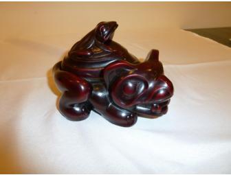 The Bear symbolizes the strength of the Great Hunter. The Frog on the other hand is the voice of the people. He is the symbol of innocence, stability and communication.
