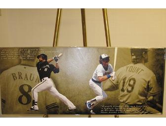 Take home two Brewers greats - 2011 National League MVP Ryan Braun and Baseball Hall of Fame inductee Robin Yount on this piece...each pictured with their own personal quote about their part in playing America's great pasttime.