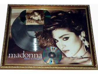 This is a HUGE Madonna Record Award (approximately 20x25 inches!). This is an incredible piece of music memorabilia and a must have for any Madonna fan. Imagine hanging this up in your game room, office, guest room, or even bedroom! The engraved label reads: Presented To Madonna This Diamond Record Award commemorates the sale of more than 10 Million copies of " Like A Virgin " This was never presented and is for display purposes only. Madonna wanted the album title and the cover image to make provocative link between her own religious name Madonna, as the Roman Catholic title for Jesus' mother Mary, and the Christian concept of the virgin birth. Like a Virgin is the second studio album by American recording artist Madonna, released on November 12, 1984 by Sire Records. Five singles were released from the album, with the title track and "Material Girl " becoming worldwide hits and "Into the Groove " becoming her first number-one single in the United Kingdom. To promote Like a Virgin , Madonna embarked on her first concert tour-The Virgin Tour-which travelled in cities of North America only. Like a Virgin has attained significance as a cultural artifact of the Eighties. Madonna proved that she was not a one-hit wonder and was able to establish herself as a musical force to be reckoned with. Her songs became a lightning rod for both criticism by conservatives and imitation by the younger female population, especially "Material Girl " and "Like a Virgin ". According to author J. Randy Taraborrelli, "Every important artist has at least one album in his or her career whose critical and commercial success becomes the artist's magic moment; for Madonna, Like a Virgin was just such a defining moment ".