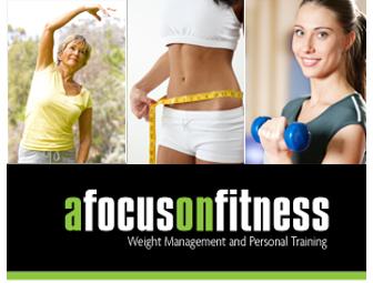 Great! A Focus on Fitness- Three One hour training sessions with a Nationally Certified Personal Fitness trainer. Do you want to lose weight? Gain Muscle? Increase Strength or stamina? We can help. These sessions will be custom designed based on YOUR goals. Each session is for one full hour individually OR 30 minutes each with a "buddy", so bring a friend!