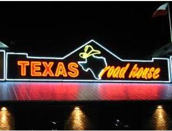 The Texas Roadhouse story is simple. Legendary Food, Legendary Service — all with lots of Legendary Fun! Enjoy their handcut steaks, ribs, handmade sides and fresh baked bread. This certificate is good for dinner for 2. Certificate is valid up to $30, does not include beverages or gratuity and may not be redeemed for cash. No change will be given, one certificate per table, per visit, valid for dine-in only. Certificate does ot have an expiration date. www.texasroadhouse.com