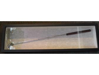 Own a piece of history with this Arnold Palmer autographed chrome Arnold Palmer Company Putter. The Putter is mounted and framed shadow box style for your display to finished dimensions of 11 1/2" x 40".