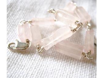 This Rose Quartz bracelet measures a little over 7 inches (just over 17 cm). The stones fall between 1/4 and 1/2 inches (around 1 cm) long and are extremely pretty. This bracelet is very wearable and comfortable, even in the shower. If you need the length changed let me know. That's no problem.