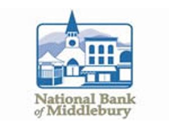 Courtesy of Natinal Bank of Middlebury, they've provided a lovely breakfast-themed gift basket containing napkins, placemats, pancake mix, maple syrup, coffee mugs and coffee.