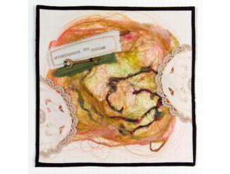 Art quilt made with cotton & silk hankies and found treasures