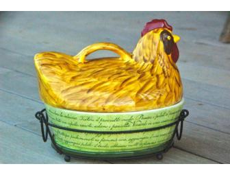 2-Quart Rooster Casserole dish with trivet & rack. Prep, cook, serve & store in the same dish!
