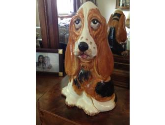 This highly sought after Price Kensington figurine of Fred Basset stands 13" tall.  Green stamp says Price Kensington Made in England. It is numbered 3976. By the black number we have letters with no color stamped into the porcelain it says Made in England. Under that is P&K in a semicircle and under that is the name Fred.