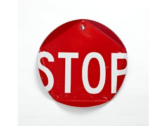 From renowned Providence artist Borris Bally. Metal serving tray hand-fabricated from recycled traffic signs. Not intended for direct contact with food. Can be displayed on a wall ready for hanging. Tray will have minor variations in individual markings, patina and position of letters.