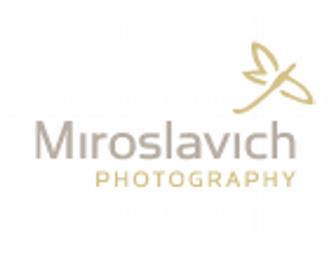 A $500 gift certificate for Miroslavich Photography. Miroslavich Photography is a full-service botique studi othat specializes in relationship portraiture to create uniwue, compelling photography. They capture your family, children and pets as they really are--whether that's silly, quiet, sassy or playful.