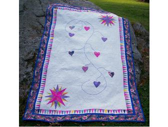 This original quilt is designed with hearts and stars to remind all those who know or care for someone with Alzheimer's Disease, that their star still shines bright in their hearts. It is important to remember all the person was before their illness and how they shined in their life and yours.