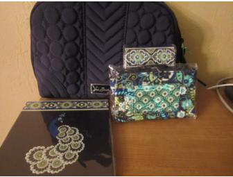 This four piece Vera Bradley collection includes a cosmetic bag, forget me nots, zip ID case, and pocket papers. All in a beautiful navy and green color.