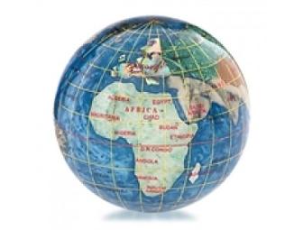 The Gemstone Globe Paperweight is a lovely example of handmade art! The beautiful oceans on this 3 inch globe surround a stunning collection of colorful gemstone continents. The sheer craftsmanship, solid weight, and design are breathtaking to behold. This very impressive globe will be a wonderful conversation piece and the perfect addition to any home or office.