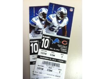 | Cheer on the Detroit Lions as they take on the Chicago Bears on Sunday, December 30, 2012 at Ford Field. Both seats are centrally located near the 50-yard-line in Section 107W, seats 7 and 8. An experience any Detroit Lions fan will love! |