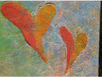 Using paint, paper and foil, Brenda Malloy has created a vibrant expression of love on canvas, through her signature hearts.