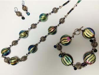 Dichroic fused glass and sterling silver beads and toggles. Necklace 20l, bracelet 8l, earring 1l